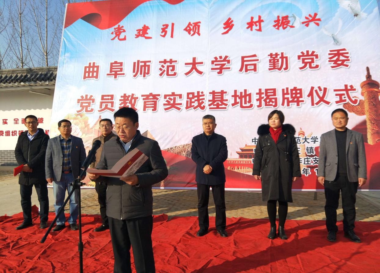 12月12日,我校后勤党委党员教育实践基地分别在王庄镇辛庄村和息陬镇北夏宋村揭牌设立。后勤党委书记冀贞友、基建处副处长陈东方、后勤管理处副处长祁世友、后勤管理处副处长张石磊、后勤各党支部委员代表、王庄镇和息陬镇党委领导及两镇村党员代表参加揭牌仪式。