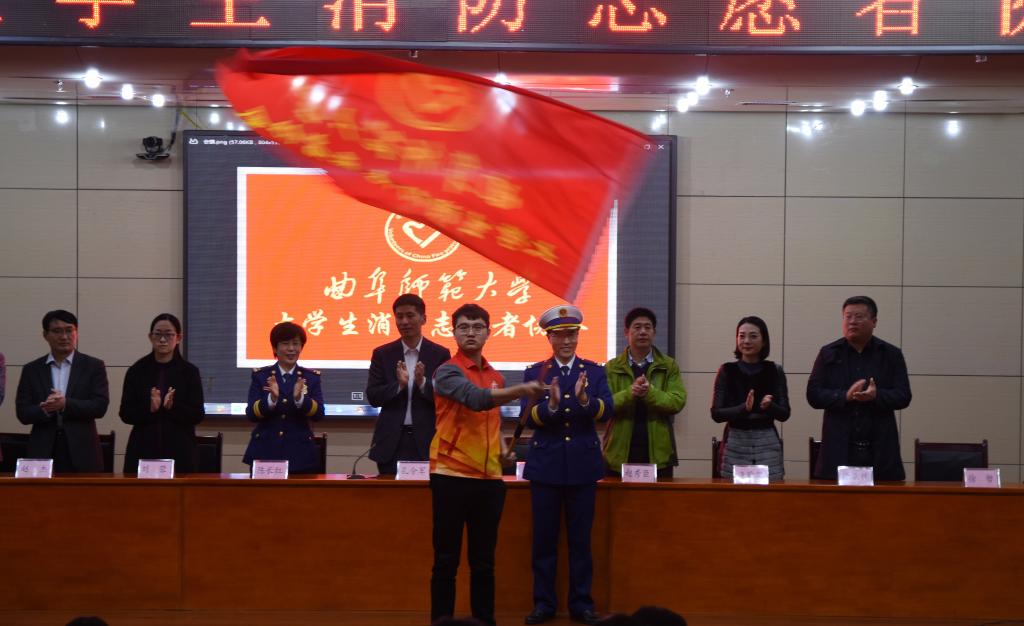 辛本顺为消防志愿者协会授旗;全体消防志愿者面对会旗庄严宣誓;消防专家陈长红为全体消防志愿者做了专题讲座,讲述了消防志愿者的权利、义务、消防志愿服务的重要意义和消防安全相关知识。