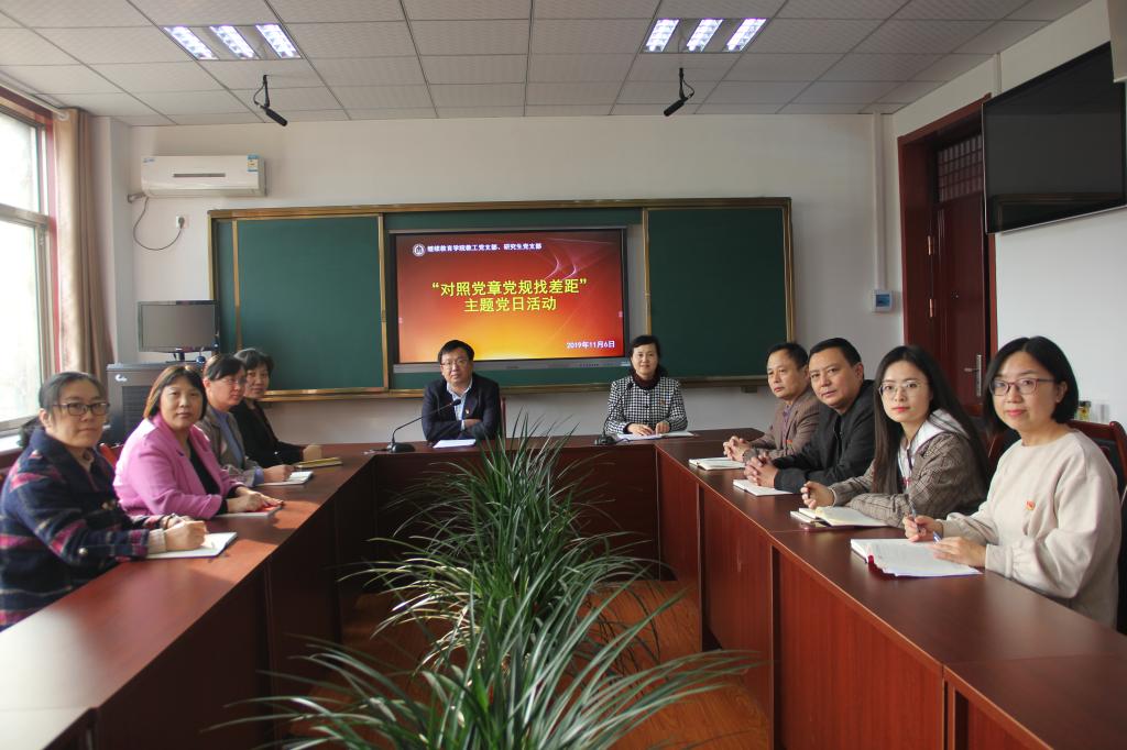 11月6日,为贯彻落实开云官网登录入口党委《关于在“不忘初心、牢记使命”主题教育中对照党章党规找差距的工作方案》要求,继续教育学院教工党支部、研究生党支部联合举办了“对照党章党规找差距”主题党日活动,党总支书记茌淑君主持,学院全体师生党员参加。