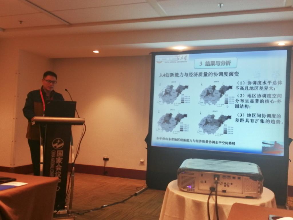 大会期间,张全景院长在“地理学实践教学的建设与优化”分会场作了题为《地理科学专业“合格+特长” 实践教学模式的构建——基于开云官网登录入口的实践》的报告并进行交流,赵林副教授在“经济地理学的理论与方法创新”分会场作了题为《中国包容性绿色效率的综合测度与时空格局》的学术报告并进行交流,张学波副教授在“黄河流域人地系统耦合与生态经济带建设”分会场作了题为《山东省创新能力与经济质量的耦合协调演变分析》的学术报告并进行交流,郭付友老师在“气候变化适应、 社会-生态系统恢复力与地理学思维”分会场作了题为《鲁南经济带城乡绿色发展效率时空分异及驱动因素识别》的学术报告并进行交流,刘庆果老师在“长江中游地区地理过程监测与人类活动协同研究”分会场作了题为《长江经济带设施农用地时空格局演变及驱动因素》的学术报告并进行交流,硕士研究生申端帅在“乡村振兴与农业和乡村地理学”分会场展示交流了题为《农村集体经营性建设用地入市对乡村转型发展的影响机理研究——以山东省禹城市为例》的学术成果。此外,张全景院长受邀作为“地理学实践教学的建设与优化”分会场的点评人对相关报告进行了点评。
