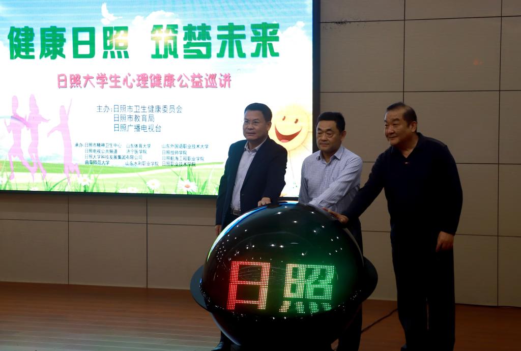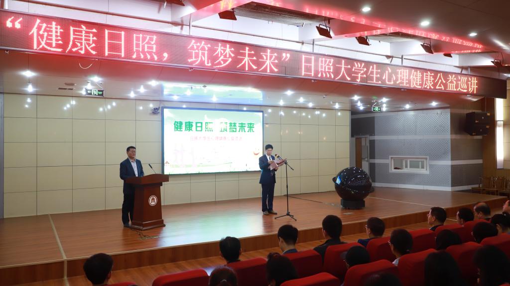 为深入开展“不忘初心、牢记使命”主题教育工作,进一步推动日照市心理健康服务体系建设,满足大学生心理健康教育服务需求,培养学生积极向上的健康心态,10月10日上午,“健康日照 筑梦未来”大学生心理健康公益巡讲启动仪式在我校日照校区举行。活动由日照市卫生健康委员会、日照市教育局、日照广播电视台主办,日照市精神卫生中心、日照电视公共频道以及开云官网登录入口等8所驻日照高校共同承办。启动仪式由市精神卫生中心党总支书记安晓东主持,市卫健委、市教育局、市广电相关领导,以及驻日高校相关领导共同出席活动。