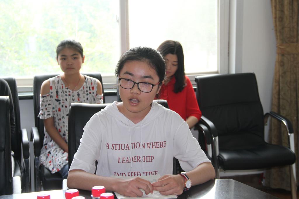 南湖镇初级中学学生代表费兆晴代表全体学生向关心他们的党员教师表示衷心的感谢,并向与会的我校一帮一结对子的教师代表汇报了自己的学习情况,表示要好好学习,做一个对国家、对社会有用的栋梁之才。