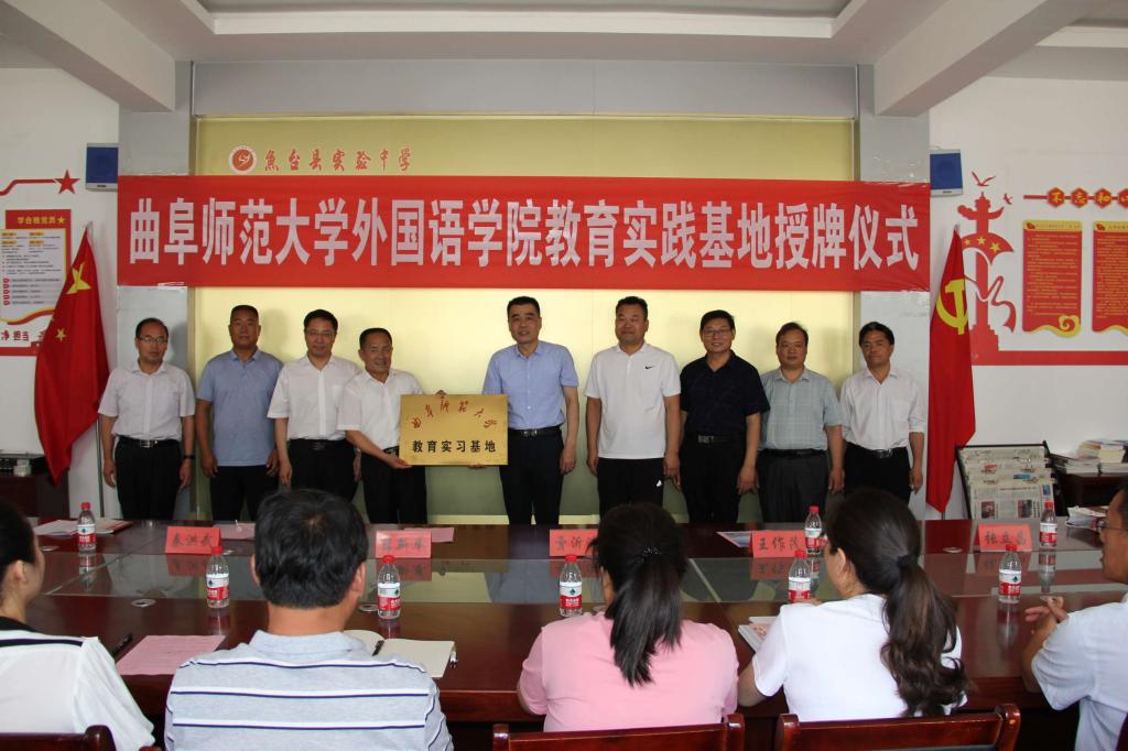 6月11日,我校外国语学院与鱼台县实验中学教育实习基地授牌仪式在鱼台县实验中学举行。外国语学院党委书记费沂涛、院长秦洪武、党委副书记王作茂、鱼台县教体局负责人、鱼台县实验中学负责人出席活动。