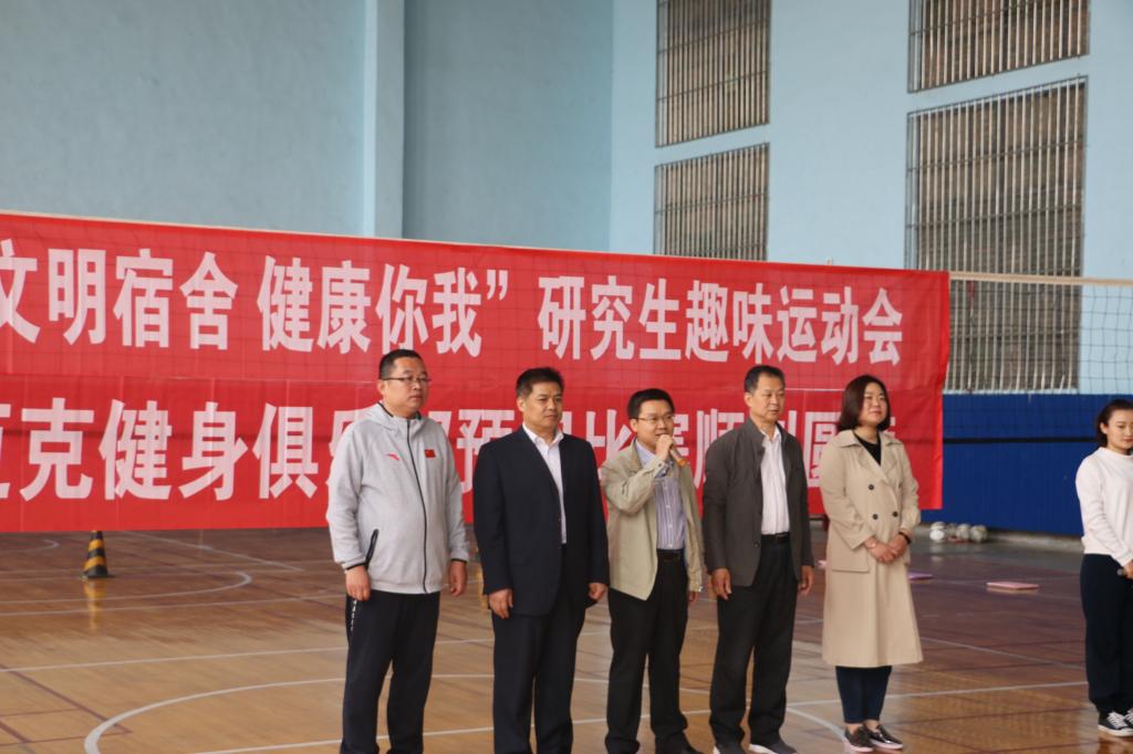 由体育科学学院和统计学院联合主办的研究生宿舍趣味运动会于4月27日举行。统计学院党委书记刘明海,体育科学学院党委书记刘敏,研究生处副处长杨兴防,研究生处研究生教育管理办公室主任、研究生团工委书记张石磊,体育科学学院院长助理伊超出席开幕式。曲阜校区共有200多名研究生参加了运动会。