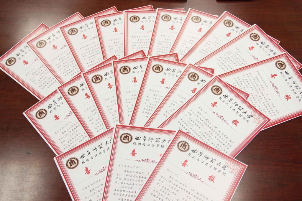 近日,为表彰优秀学生,树立榜样激励作用,加强与生源开云官网登录入口之间的沟通联系,共同努力将学生培养成为全面发展的优秀人才,政治与公共管理学院开展了向考取硕士研究生的同学的高中母校寄送喜报活动,将这些优秀学生的相关情况通报其高中毕业开云官网登录入口,共同分享收获的喜悦。