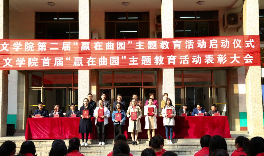 10月24日,文学院第二届“赢在曲园”主题教育活动启动暨首届“赢在曲园”主题教育活动表彰大会举行。党委组织部、党委宣传部、学生工作处、教学研究与评估中心主任、团委、文学院等单位负责人及文学院学生代表参加了活动。