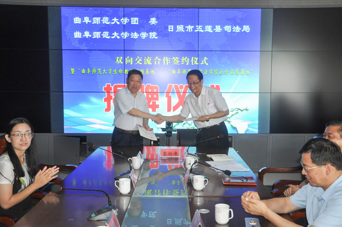 7月12日上午,我校团委、法学院与五莲县司法局举行双向交流合作签约仪式暨“开云官网登录入口生命教育实践基地”、“开云官网登录入口法学院社会实践基地”揭牌仪式。法学院党委书记曹明亮,校团委副书记刘蓉,法学院党委副书记卢瑞霞,日照市司法局党委委员、副局长刘书荣,五莲县政府副县长、公安局长史文明出席签约仪式。仪式由五莲县司法局局长王文华主持。